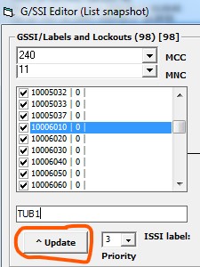 Om vi till exempel vill döpa en talgrupp till ”TUB 1” så markerar vi talgruppen i listan, skriver namnet i fältet undertill och trycker sedan på Update. Du kan också sätta en prioritet för talgruppen – 1 prioriteras över 2, osv.