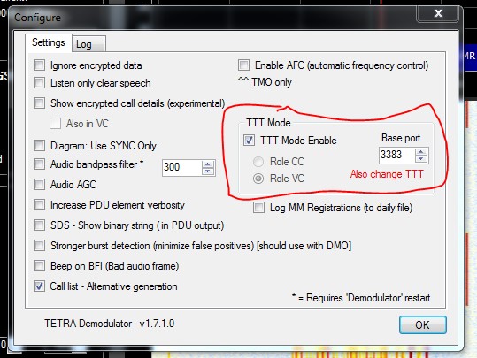 9) Klicka i TTT Mode Enable. Oftast behöver du inte ändra Base port, men OM du gör det så behöver du ställa om den i TTT också. Klicka på OK.