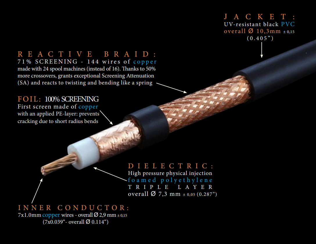 • Far better performances than RG213, with an additional foil that protects it from electromagnetic interferences.